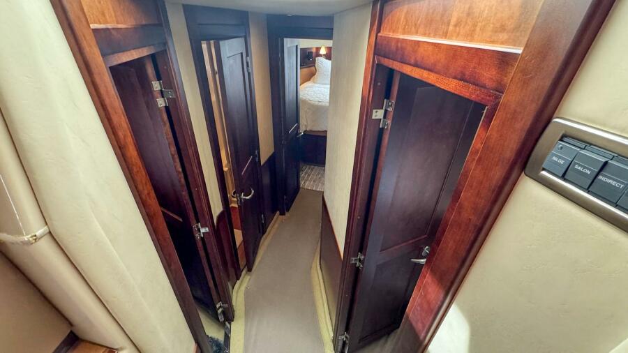 Below deck, Sea Boss offers a three-stateroom, two-head layout that comfortably accommodates owners and guests: