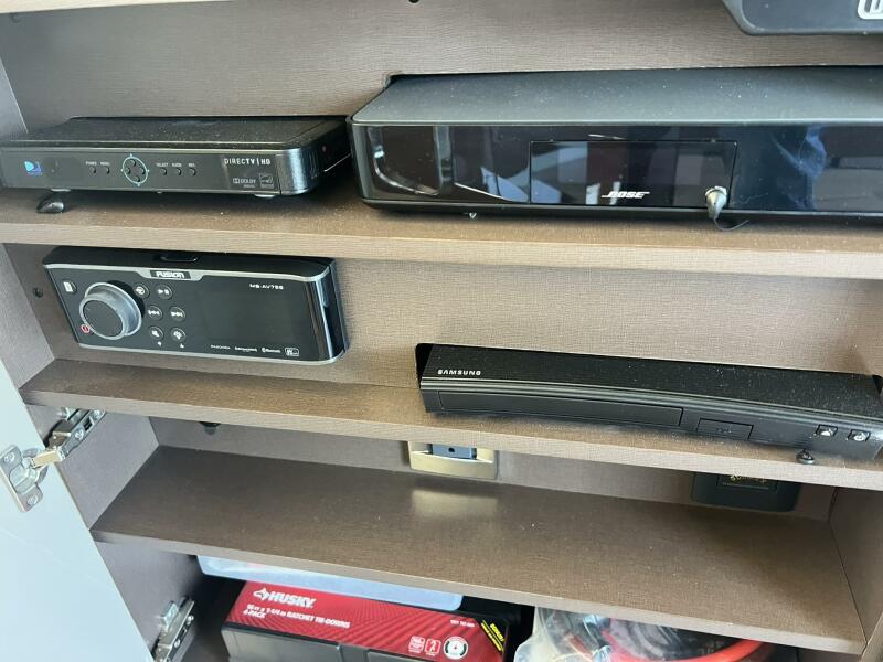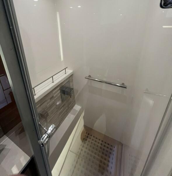 Twin Raymarine GS165 displays, Caterpillar C12.9 inboards, and joystick docking integration give you complete confidence at the helm. The digital switching system allows instant control of lighting, air conditioning, and shades—right from the touchscreen or a connected tablet.