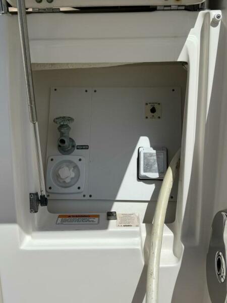 Upon approaching the vessel you will first notice the sporty styling and large teak laid swim platform. The swim platform is the perfect spot for enjoying the sun, diving off the stern, or grilling your favorite meal on the transom mounted electric grill. As you pass through the transom opening into the cockpit you find a l shaped seating area with a teak table. The perfect spot to supervise little ones as they play off of the stern of the anchored vessel.
