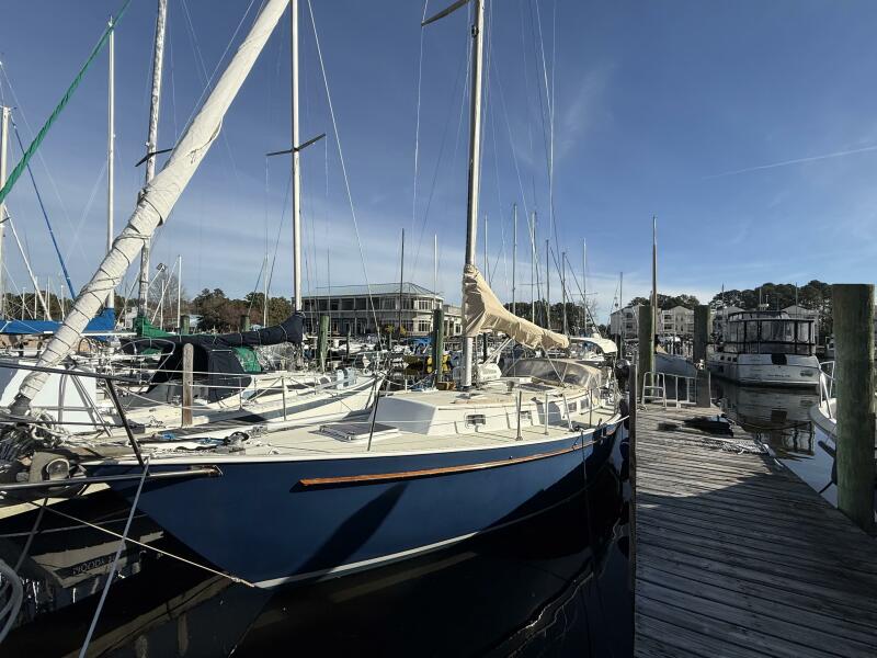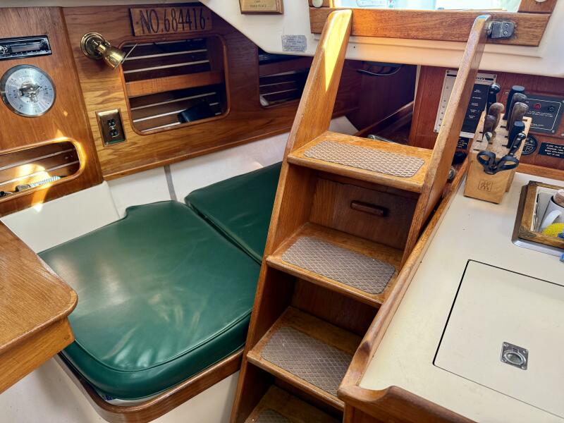 Halcyon is an outstanding example of the sought-after Niagara 35 Encore, a proven Mark Ellis bluewater design built by the legendary George Hinterhoeller. The Encore layout refines the original Niagara 35, with an improved galley-aft arrangement and a dedicated quarter berth—features that significantly enhance liveaboard comfort.