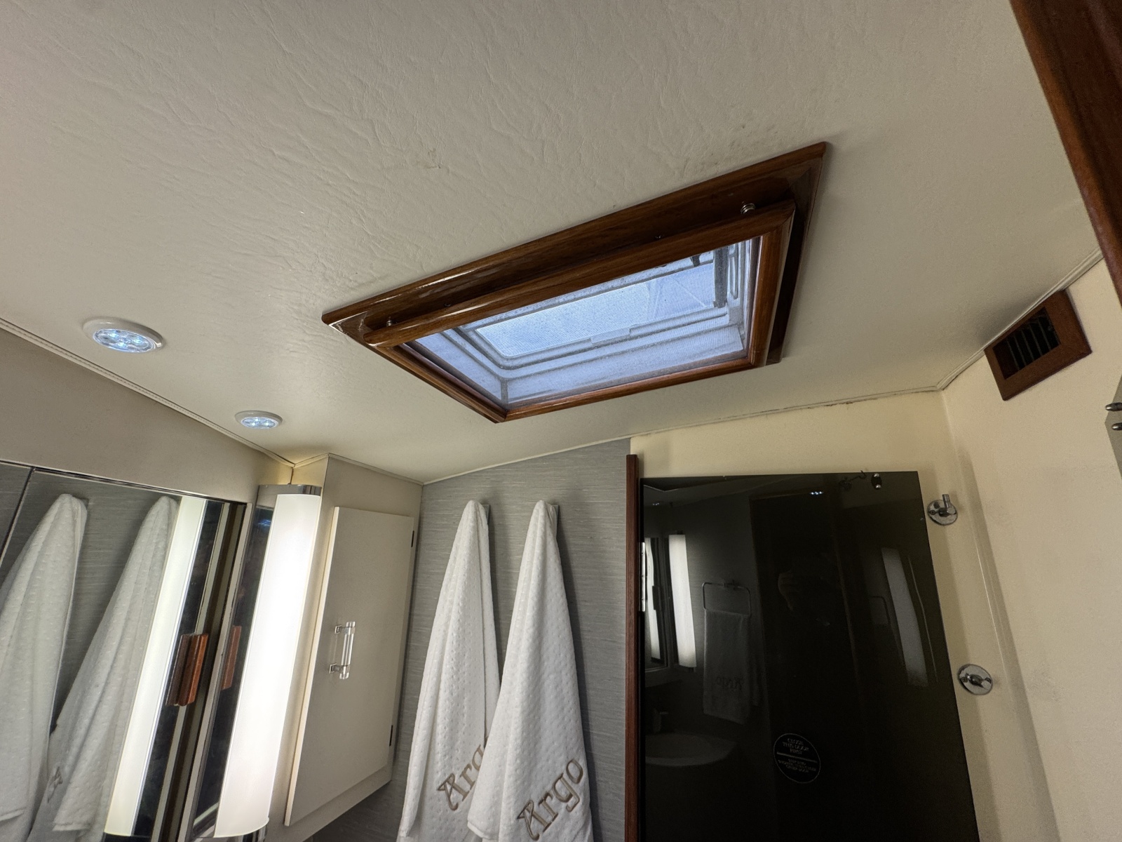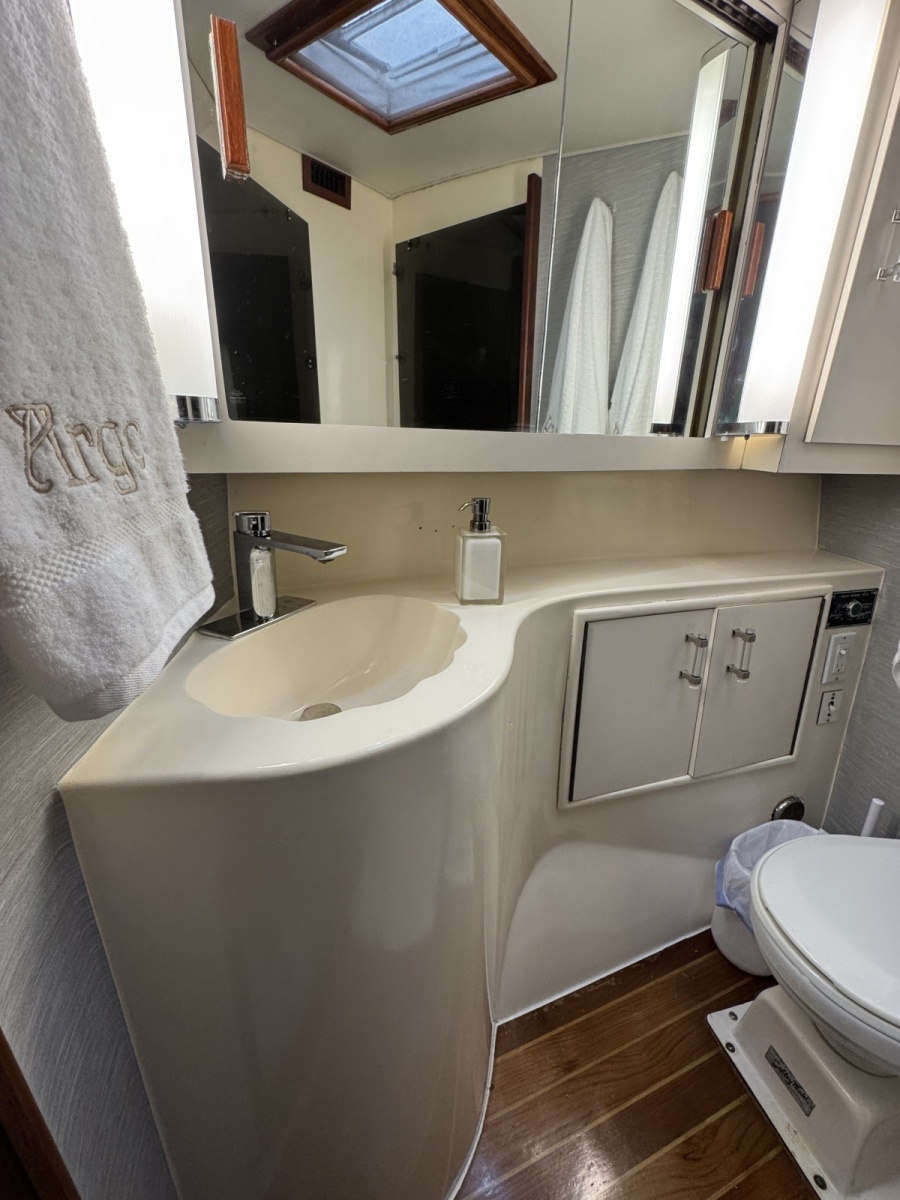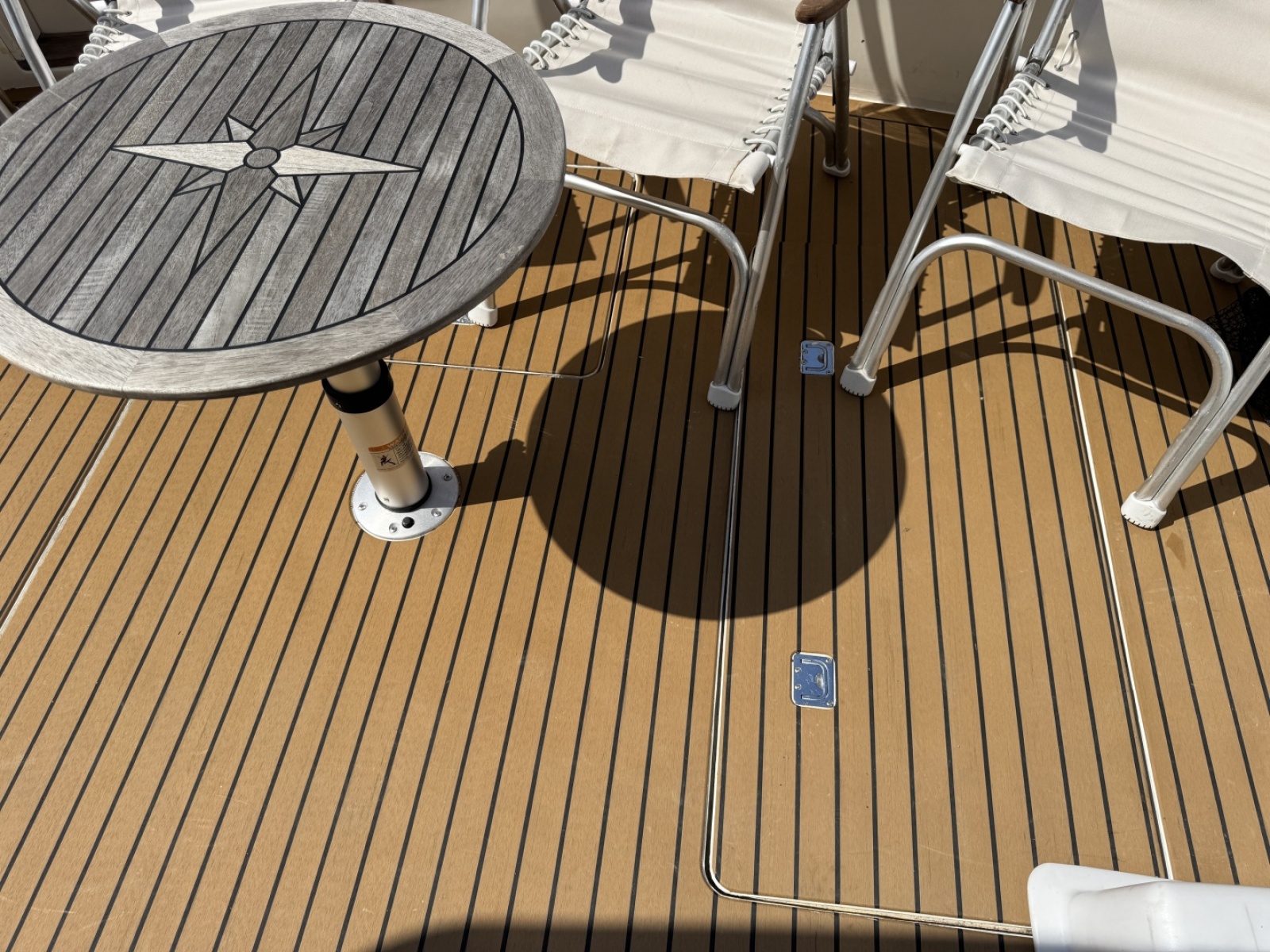 New Electronics Including Dual 12 inch Garmin Screens,GPS plotter, Radar. Chirp transducer, 2 new VHF radio's with hailer, Auto Pilot, Engine room camera, EPIRB. New Good windlass with 300ft rode new anchor 20ft chain. News Cushions on flying bridge, Reupholstered sofa and barrel chair. New granite countertop all faucets have been changed. New bed spreads, new wallpaper, new carpeting. New freshwater pump. Old teak deck removed recored with coosa board, gel coated and synthetic teak deck installed. Forward a/c controller replaced, new blinds and underwater lights, new mirrors in salon.