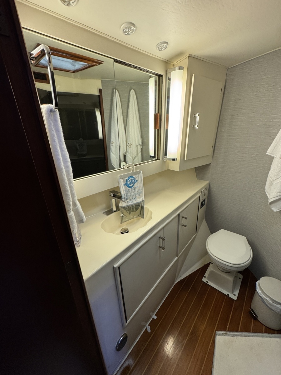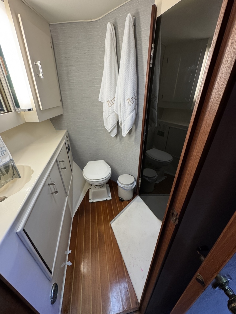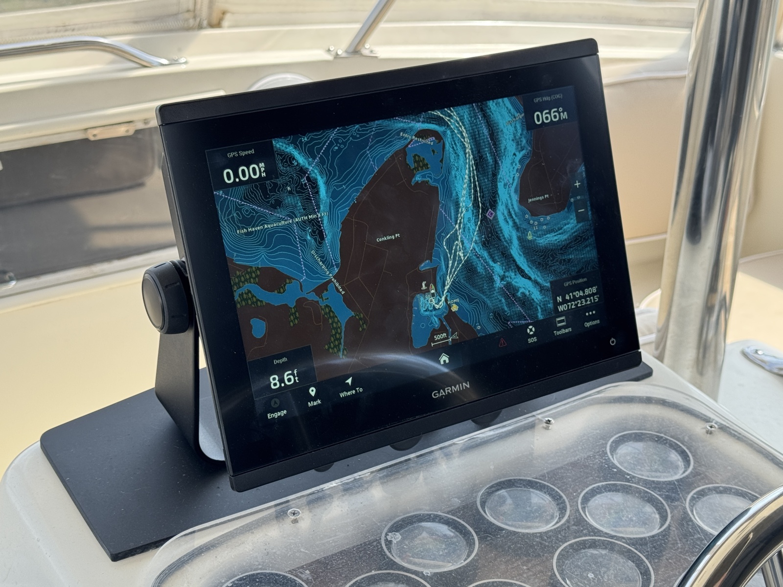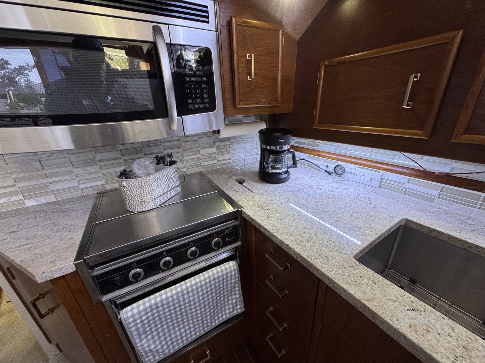 New Electronics Including Dual 12 inch Garmin Screens,GPS plotter, Radar. Chirp transducer, 2 new VHF radio's with hailer, Auto Pilot, Engine room camera, EPIRB. New Good windlass with 300ft rode new anchor 20ft chain. News Cushions on flying bridge, Reupholstered sofa and barrel chair. New granite countertop all faucets have been changed. New bed spreads, new wallpaper, new carpeting. New freshwater pump. Old teak deck removed recored with coosa board, gel coated and synthetic teak deck installed. Forward a/c controller replaced, new blinds and underwater lights, new mirrors in salon.