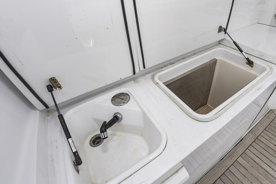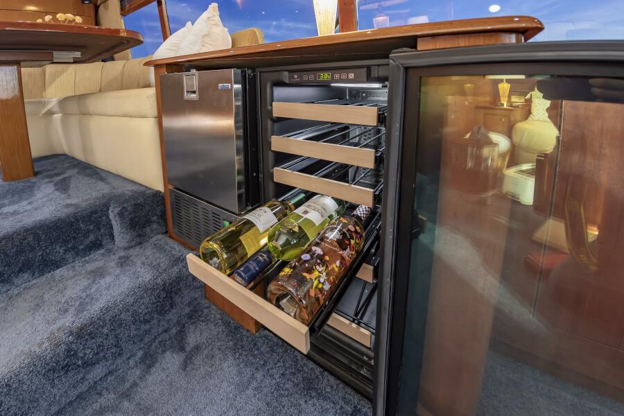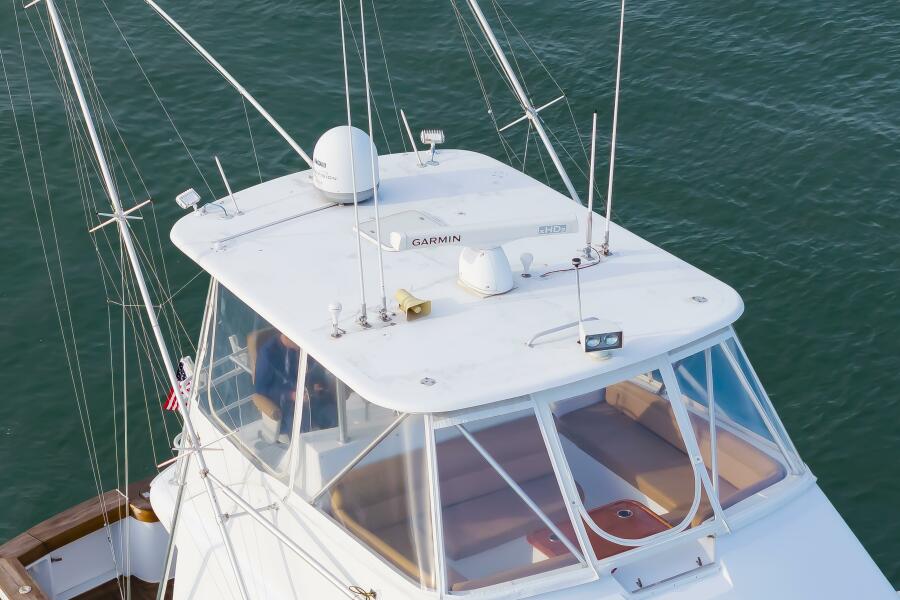 Roomy flying bridge with Ample seating and custom storage solutions