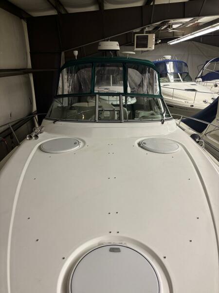Freshwater 2003 Four Winns 328 Vista, a remarkable cruiser that seamlessly blends style and performance. With an overall length of 35.08 feet, this vessel boasts a sleek fiberglass hull with a Deep Vee , ensuring a smooth ride across the water. Powered by twin Volvo Penta 5.7L engines, each delivering 280 horsepower, it offers an exhilarating cruising speed of 32 mph and a maximum hull speed of 40 mph, making it perfect for adventurous outings. The 328 Vista features two cozy cabins, providing ample space for relaxation and comfort. With a well-designed layout, this boat is ideal for both entertaining guests and enjoying quiet weekends on the water. Its advanced equipment, including a Generator, Radar/Plotter, Air/Heat, Cherry Interior, Newer Full camper Canvas, and windlass, enhances the overall boating experience. Whether you're enjoying a sunset cruise, or out with the family the Four Winns 328 Vista promises unforgettable moments on the water. Call today for your private viewing!