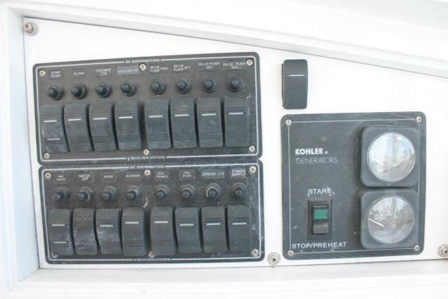 Powered by twin Caterpillar C-12's 710 hp she runs a cruise of around 30 knots and a tops out around 35 knots. Full tower with steering and controls and an exceptional electronics package that includes, Garmin, Furuno, Simrad, Raymarine and ICOM. “M.A.C. Daddy” is turn-key and ready to fish.