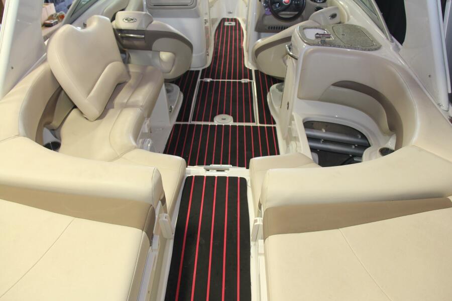 Whether you’re entertaining guests, enjoying water sports, or simply cruising in style, the Chaparral 256 SSi stands out as a symbol of quality, reliability, and timeless elegance. The deck, finished in bold black and red sea deck, adds a contemporary touch to this classic runabout, making every journey as comfortable as it is memorable.