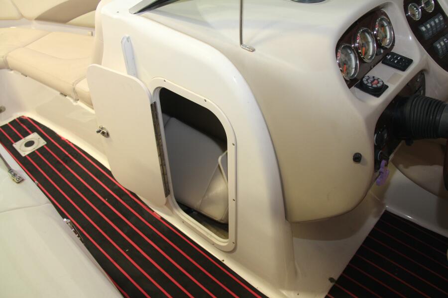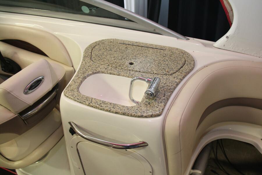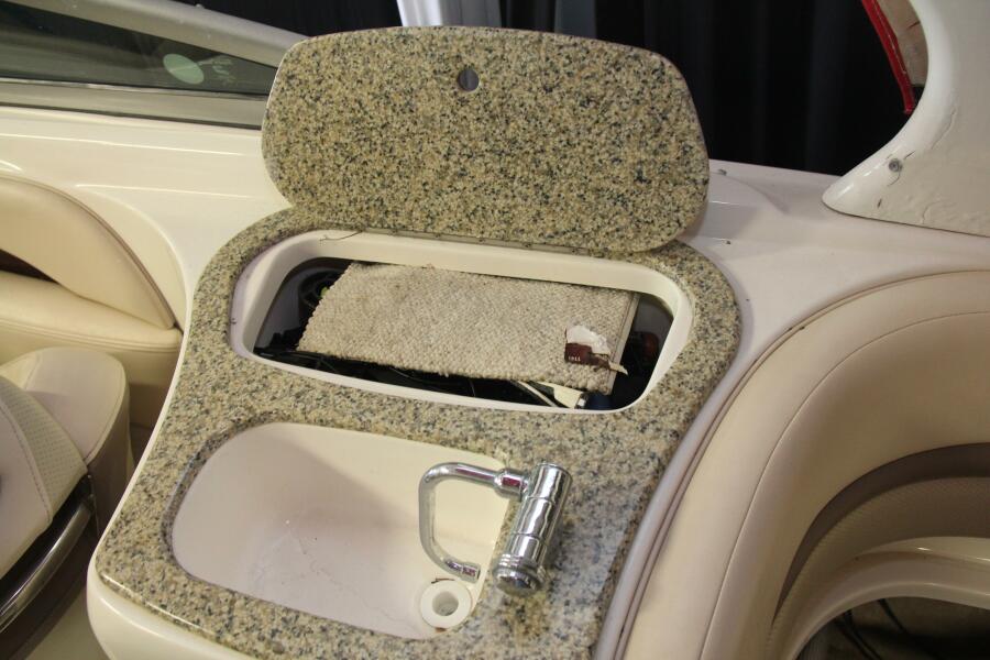 Every inch of this Chaparral is designed for comfort and utility. The enclosed head, complete with a Vacuflush system and sink, ensures privacy and convenience during long days on the water. The generous storage spaces—including a dedicated ski locker—keep your gear organized and accessible, while the dual battery system guarantees peace of mind on every adventure.