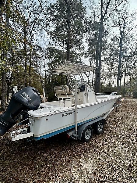 This Sea Fox 220 is a well equipped bay boat for any inshore fishing trip or day out with the family. This boat recently has had all the upholstery redone and is well equipped with Garmin, Minnkota, and Power Pole products. Magic Tilt trailer included with sale.