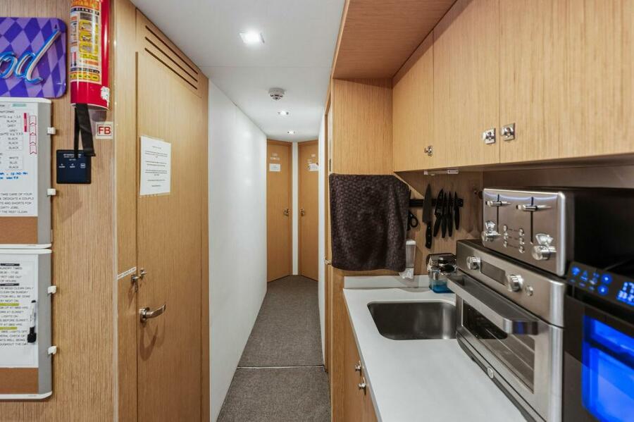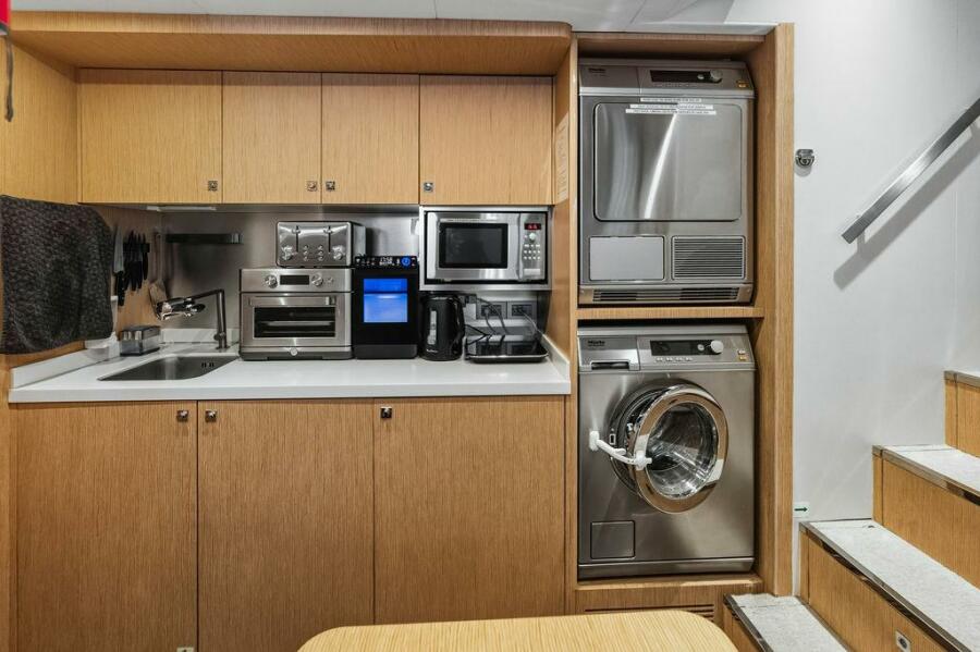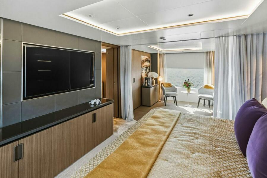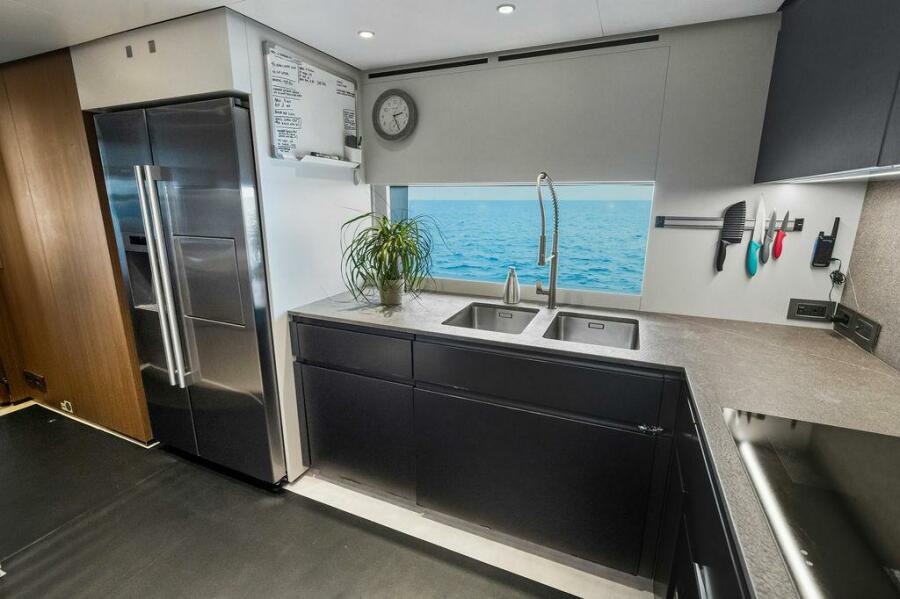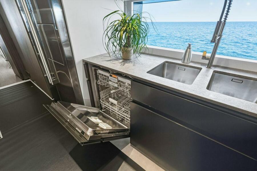 Accommodations are generous and well-planned, featuring a full-beam on-deck owner’s suite that offers exceptional privacy, ample storage, and a luxurious ensuite bathroom. Below deck, guest staterooms provide five-star comfort, each with its own ensuite, making the yacht ideal for extended cruising with family and friends.