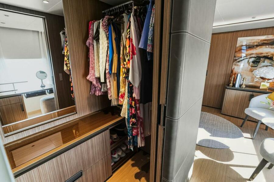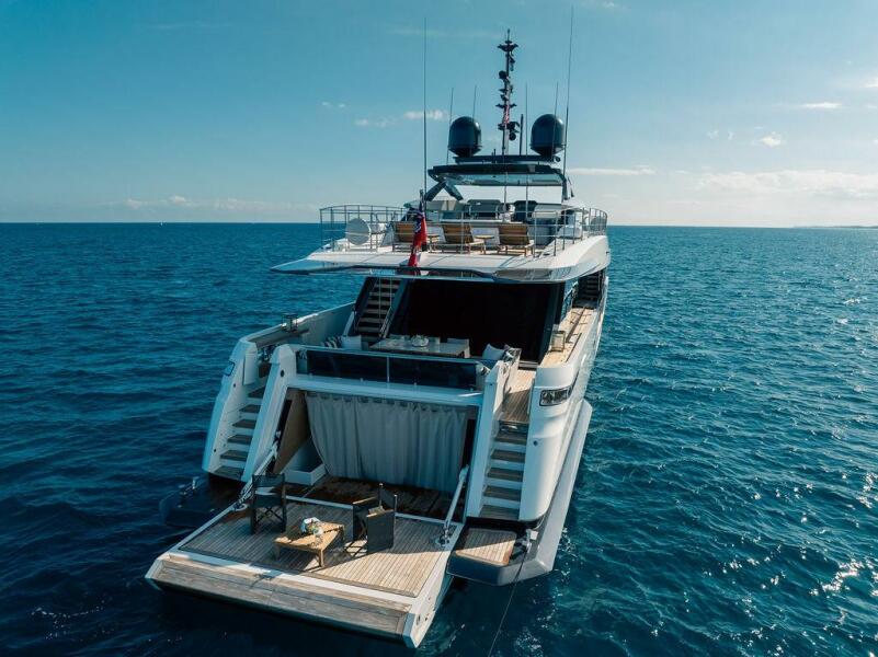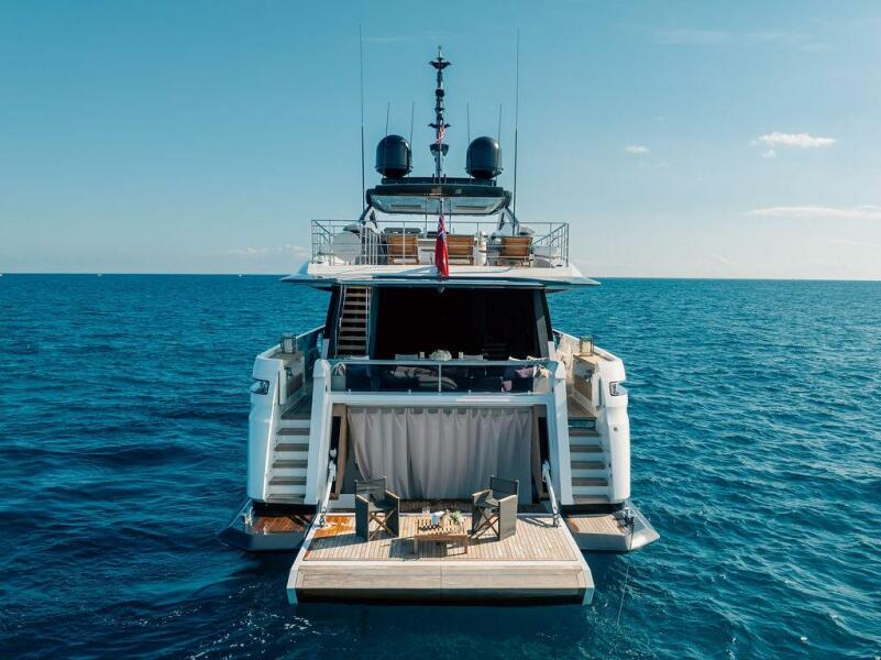 The yacht features sleek, contemporary exterior lines that are instantly recognizable as Custom Line, along with expansive glazing that allows natural light to flood every space. Designed for both private ownership and high-end charter potential, it strikes an impressive balance between indoor and outdoor living.