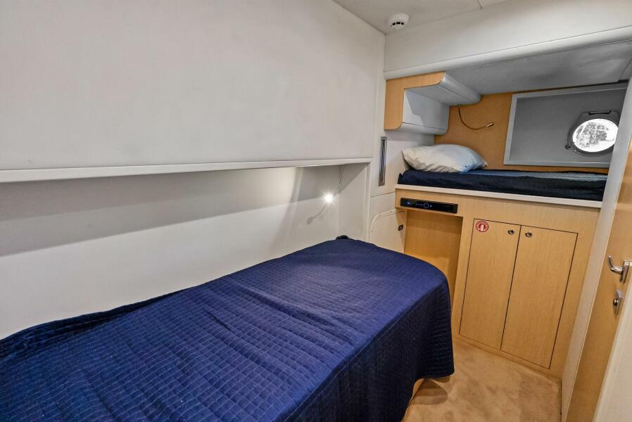 Twin beds in guest cabin