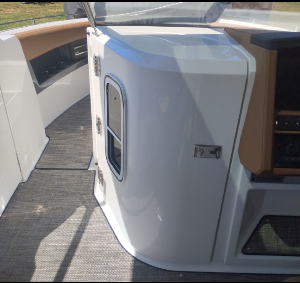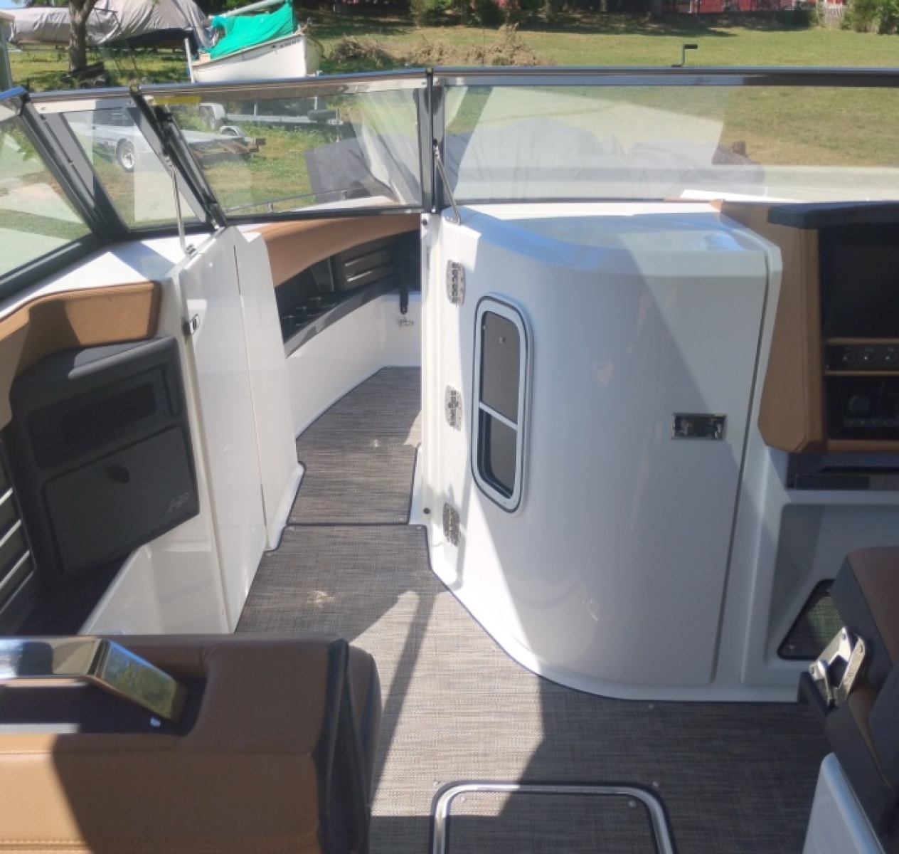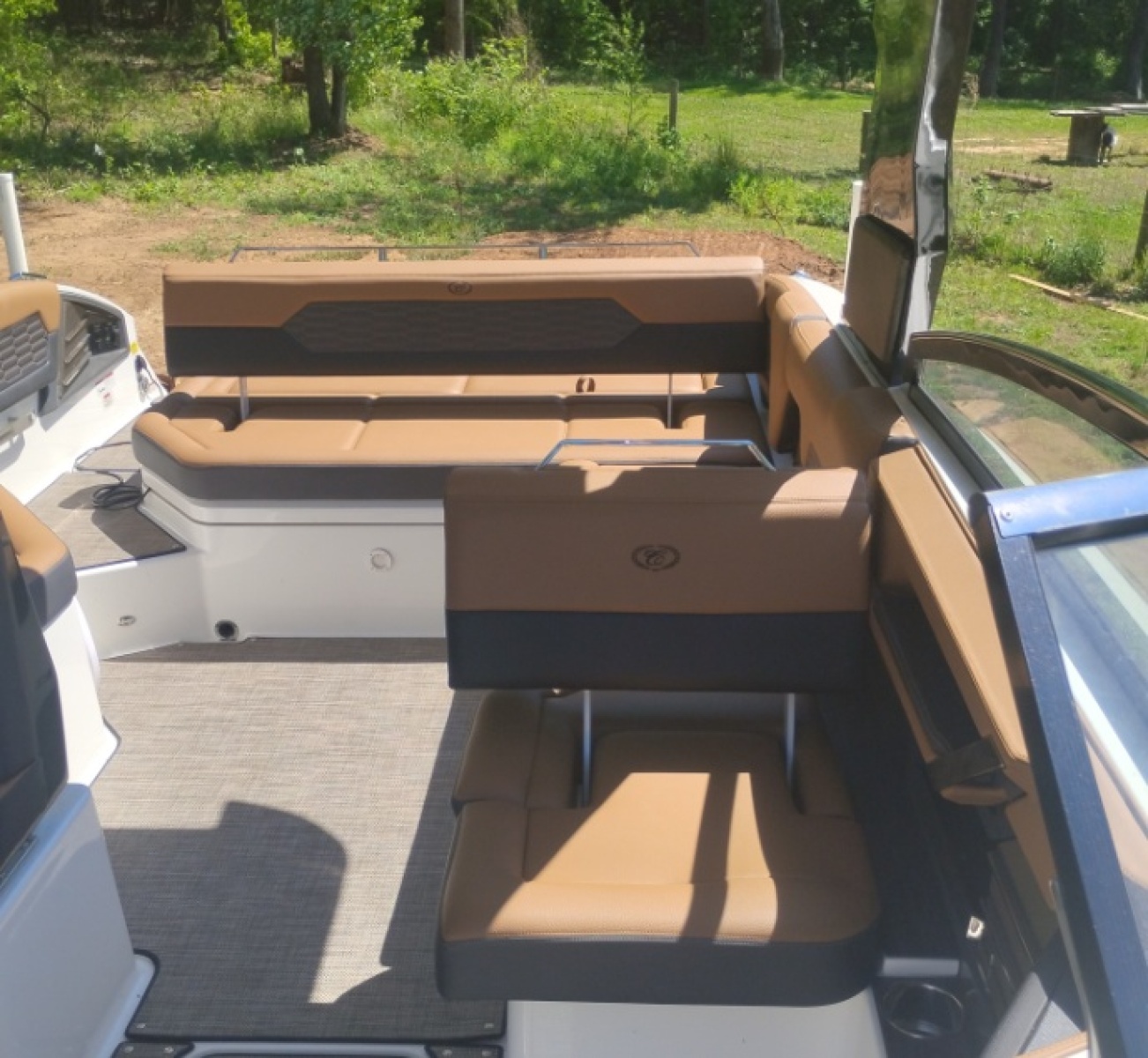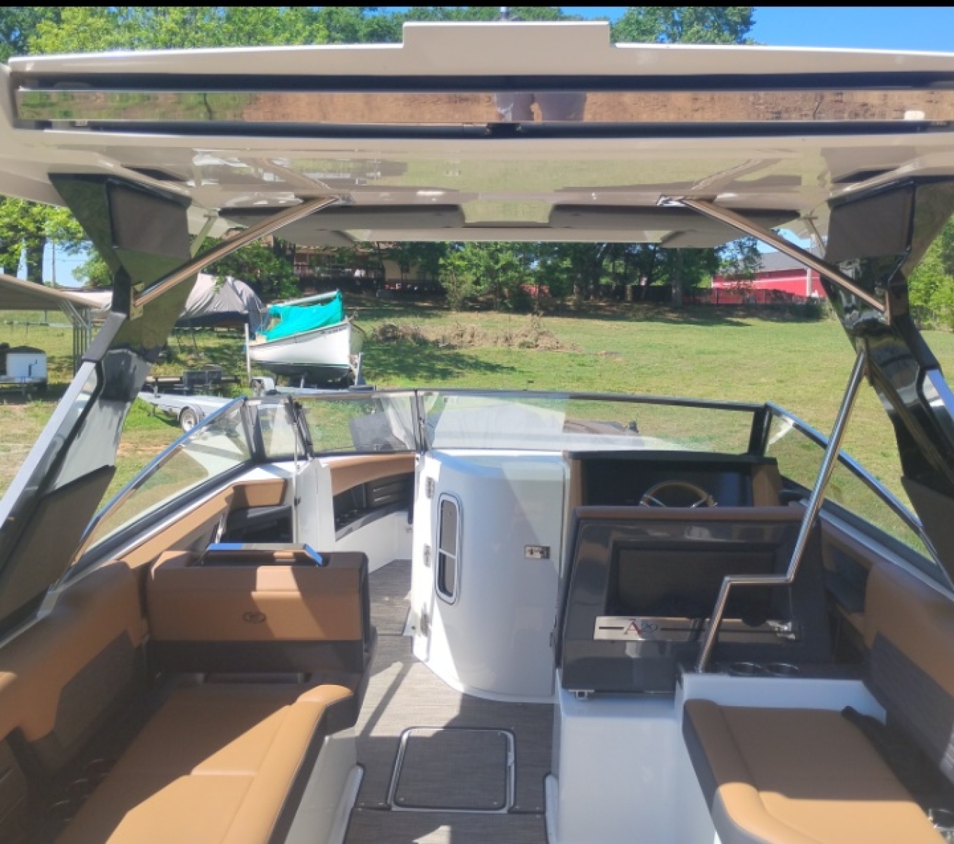 • Performance & Handling: The A29 features an extended running surface for faster planing, sharper turns, and reduced bow rise. Powered by a Volvo Penta V8-380 hp engine, it offers robust power and easy maneuverability.
