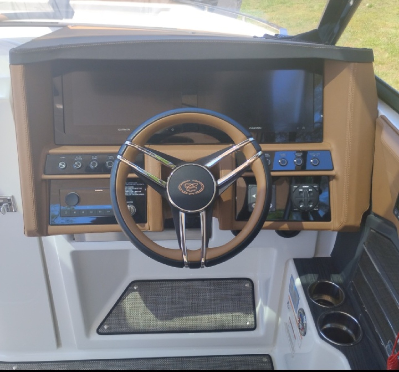 • Helm & Technology: The dash is designed with a "glass cockpit" approach, featuring standard dual 10-inch Garmin touchscreens for navigation and engine management.