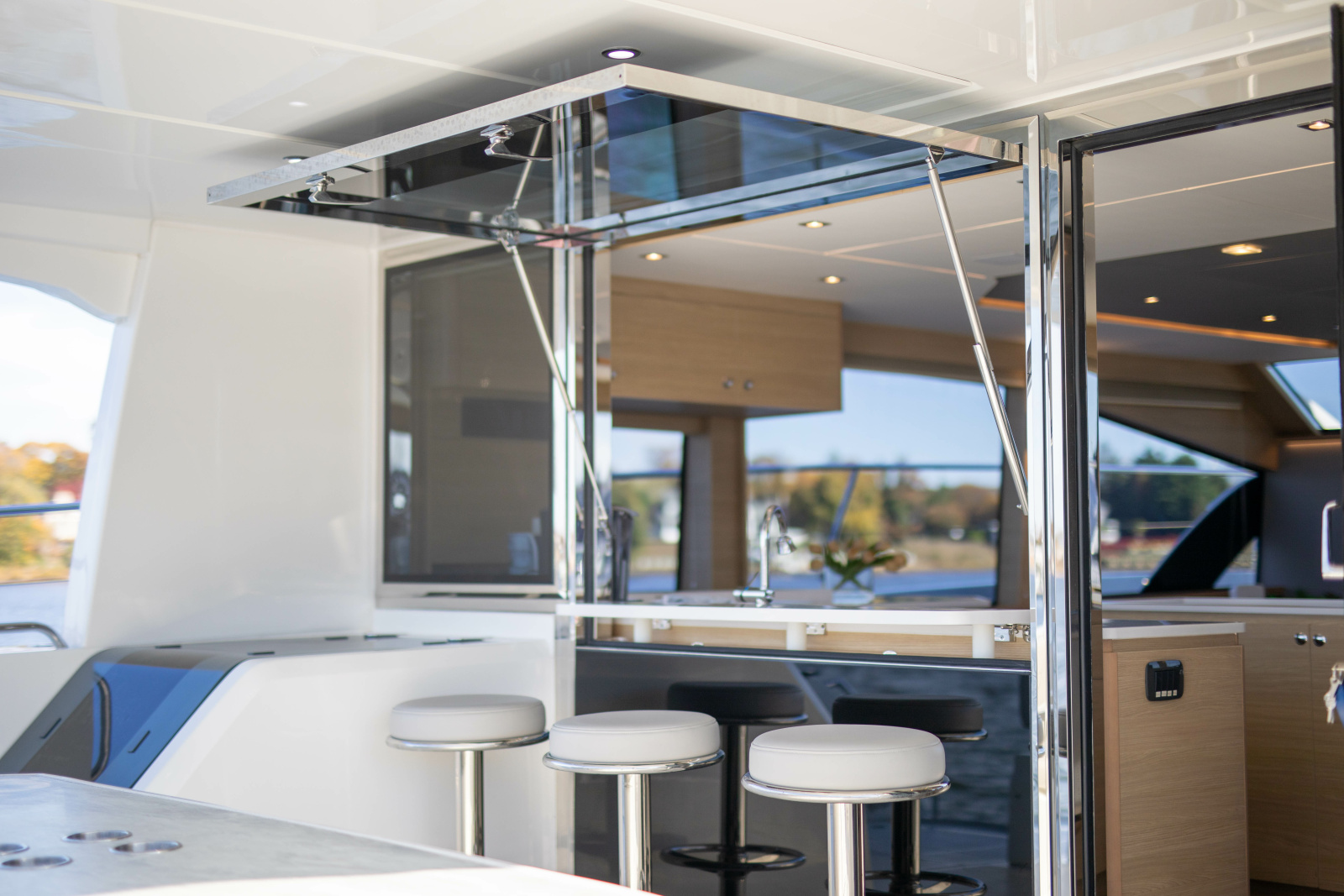 With unmatched stability across its impressive 25'2" beam, this remarkable yacht makes every mile feel like a reward. The panoramic salon with full-size refrigeration and oversized sliding doors flows seamlessly to the expansive cockpit. Above, the flybridge becomes your elevated social hub with multiple seating areas and wet bar. The full-beam master suite offers privacy, while thoughtful touches throughout create a genuine sense of home. With smart navigation systems and Category A ocean certification, the Aquila 54 gives you everything needed to roam farther and feel completely at home along the way.