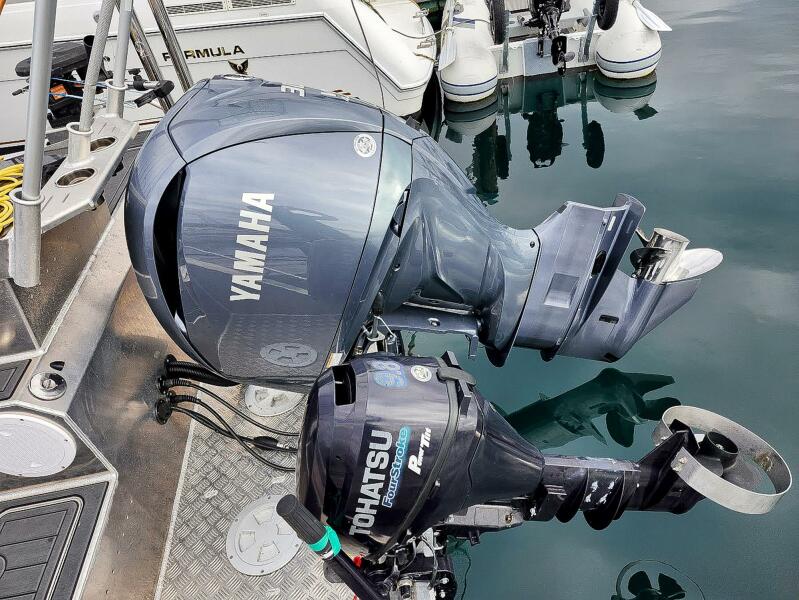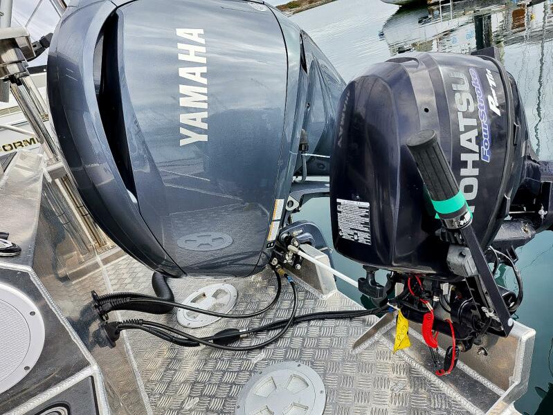 Gospel Boat Co. has come out with their special lineup of Aluminum boats, whose mission is to offer high quality boats for all types of ocean adventures. Just listed this like new (2 hrs) Profisher 750 model, is a fantastic boat for anyone serious about fishing. She is a perfect vessel for the west coast of BC. This 25ft is built with a double chine structure, which makes for a soft ride and less bumps. Max speed gets you out to your fishing spots quick at 38 MPH. The 26-degree deadrise cuts through the waves easily. Very quick to get up and plane with exceptional performance and efficiency. Hydraulic steering control while seated in the wrap-around, with dampening shocks, helm seat. The double door lockable cabin provides exceptional comfort. This model includes a forward bunk and head, various seating and storage, multiple opening windows allowing the fresh air to flow through and heater if a bit chilly. Stop, anchor and have a rest when ever you need to. The cockpit has a 2nd helm station, which allows full control while trolling. Lower the exterior seats, which do not take up space for fishing and provide more seating for passengers. Downrigger setup, S/S 1000w electric prawn puller, bait tank, swim ladder, side easy entrance gate, Eva synthetic decking, grab handles everywhere and the electric windlass. Includes the double axle 2024 Qingdao Hoiro boat trailer rated for 6094 lbs. This is a ready to go package. Like we mentioned, basically new off the ship. The protective factory plastic inside, has not been removed........