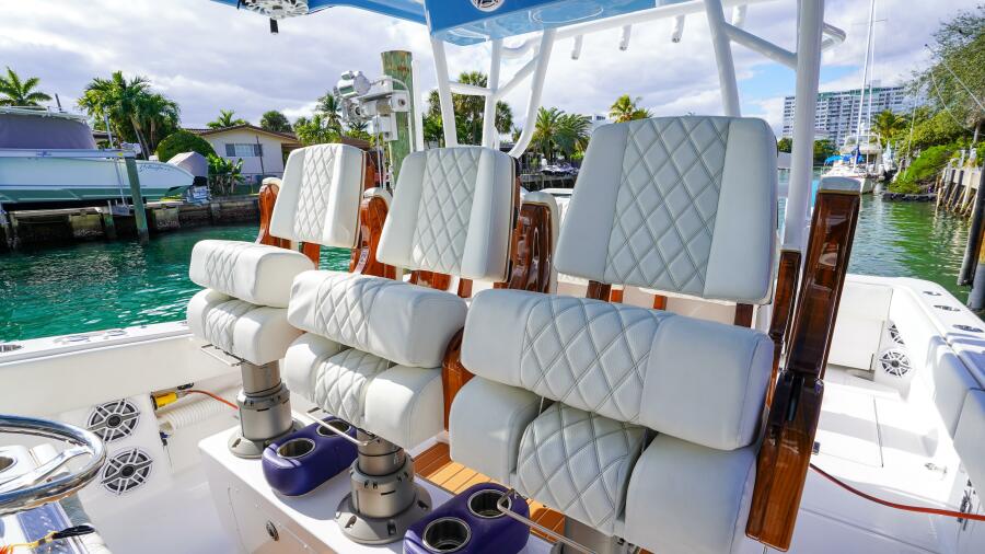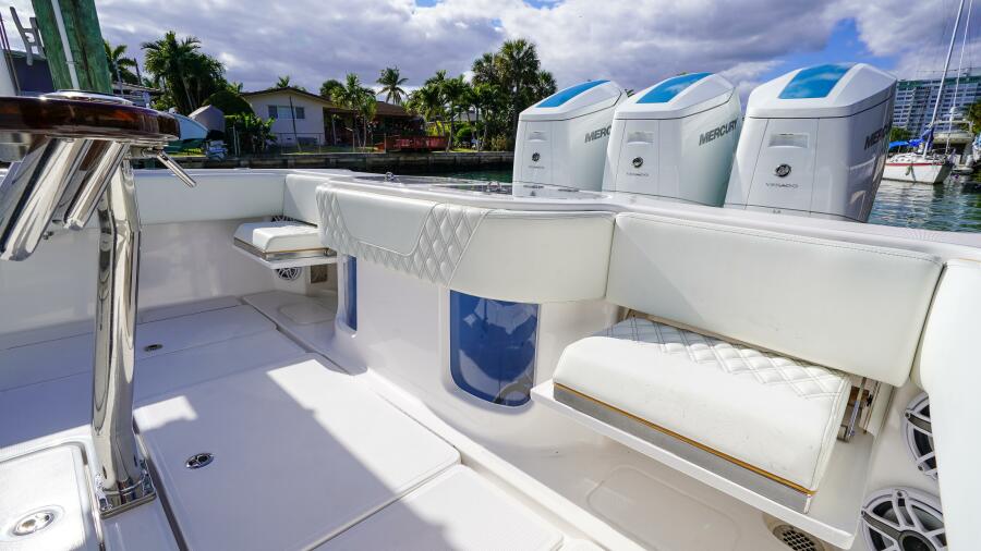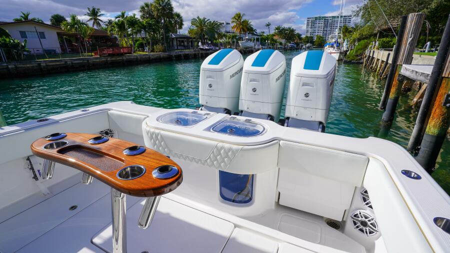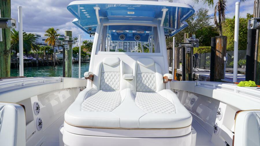 This 2024 Invincible 43 Open Fisherman is one of the highest-spec 43s ever built and one of the most comprehensively equipped center consoles. Powered by triple Mercury 600 Verado outboards with VesselView 903 and JPO joystick control at both the lower helm and second station, this Invincible 43 delivers elite offshore performance, effortless maneuverability, and exceptional ride quality thanks to its advanced stepped hull. Fully loaded for serious fishing and luxury cruising, highlights include Seakeeper 3 gyro stabilization, extensive Garmin electronics package, FLIR thermal night vision, Starlink connectivity, custom tower and hardtop configuration, over 40 rod holders, dual illuminated livewells, electric reel outlets, teaser reels, and a Best Marine seachest system. Comfort features include diamond-stitched custom upholstery, triple Release Marine seats with ShoXS pedestals, U-shaped forward seating, extended coffin box, helm and console A/C, deluxe electric head, bow thruster, dive door with ladder, windlass, RGB underwater lighting, premium JL Audio sound system, and dual Bahama shades. With a custom two-tone gelcoat hull, white engine upgrade, and no expense spared throughout, this Invincible 43 Open represents a rare opportunity to own a turn-key, fully loaded offshore center console yacht built for both tournament-level fishing and luxury on the water.