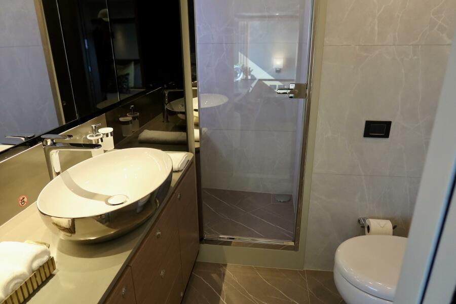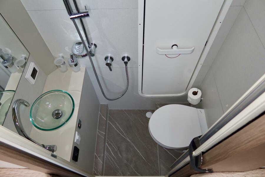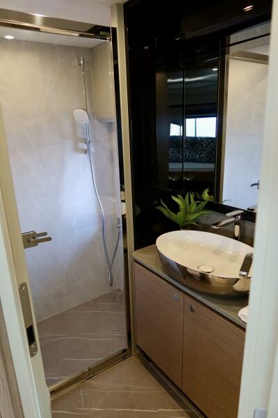Fourth Aft Cabin Equipped w/ (2) Beds, Furniture in Walnut Wood, Wardrobe, Opening Porthole, Large Window, HPL Floor, Separate Toilette w/ WC, Basin, Shower, Independent Access From Aft Platform & Open Door